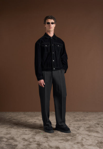 Whipstitch Raglan Effect Zip Hoodie - Black