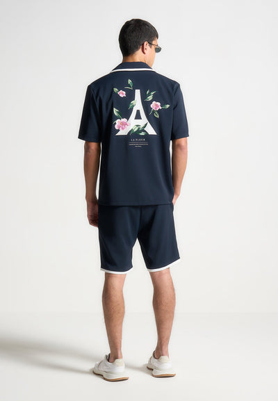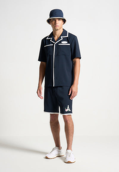 Velvet Eiffel Bowling Shirt - Cream/Blue