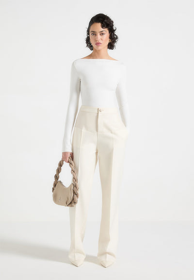 Leather Panel Tailored Trousers - Cream