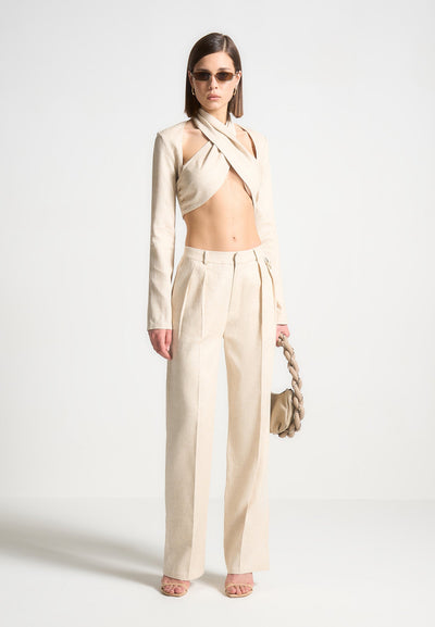 Linen Crossover Bolero Top - Natural