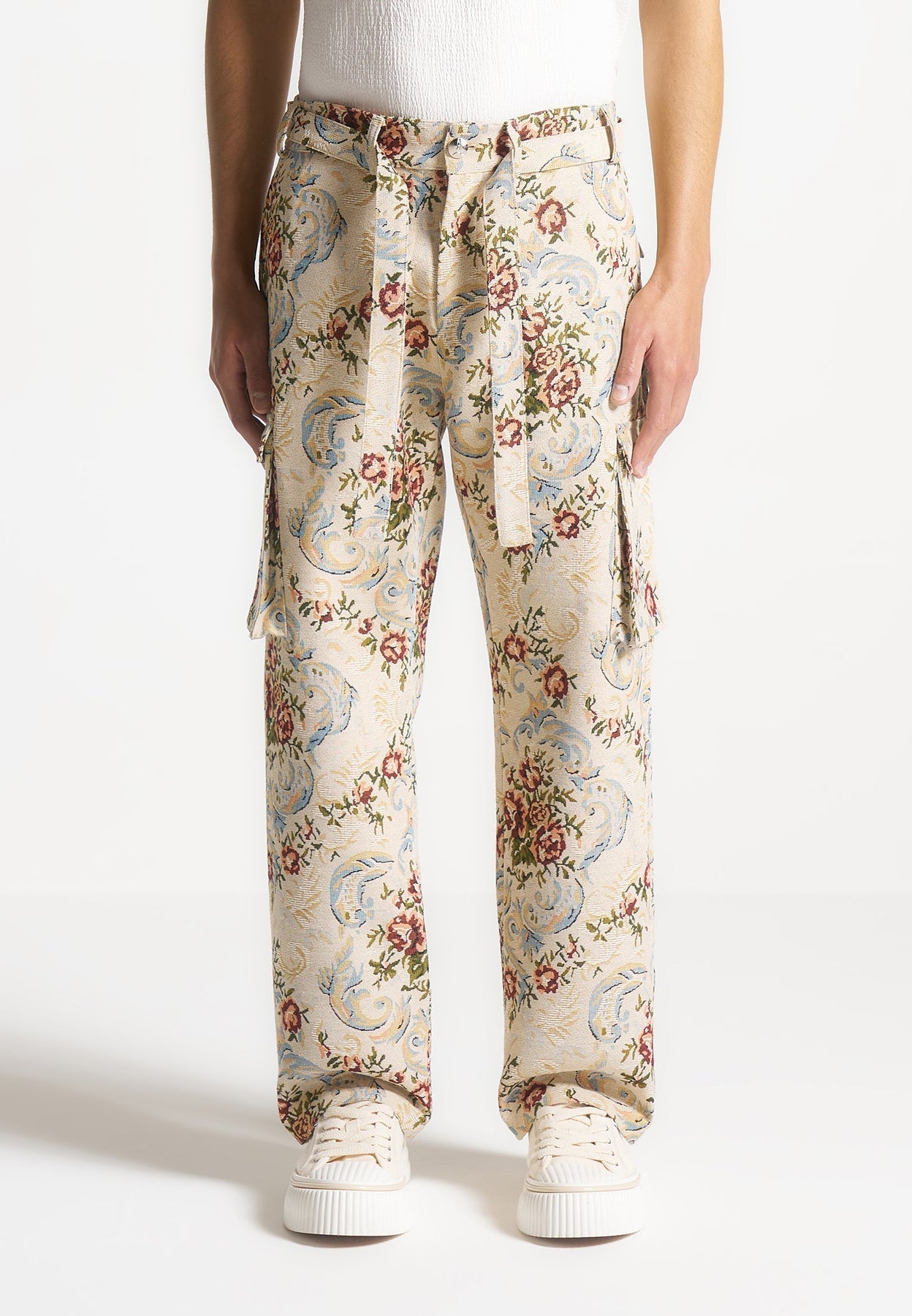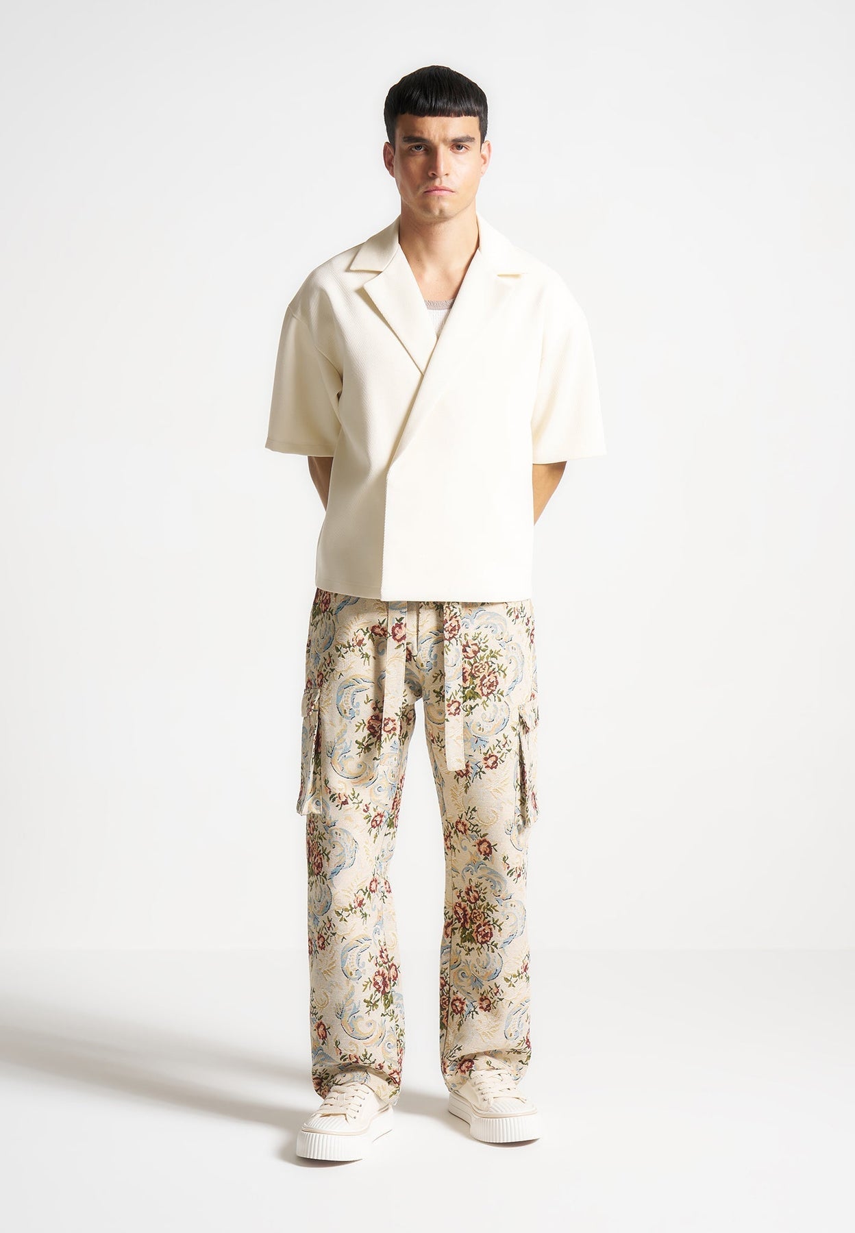 Jacquard Cargo Trousers - Beige