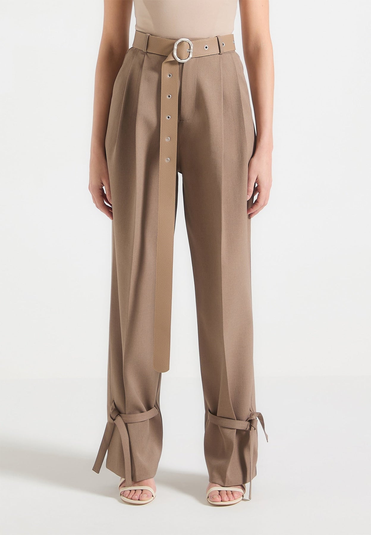 Tailored Trousers with Oversized Belt and Ankle Ties - Taupe