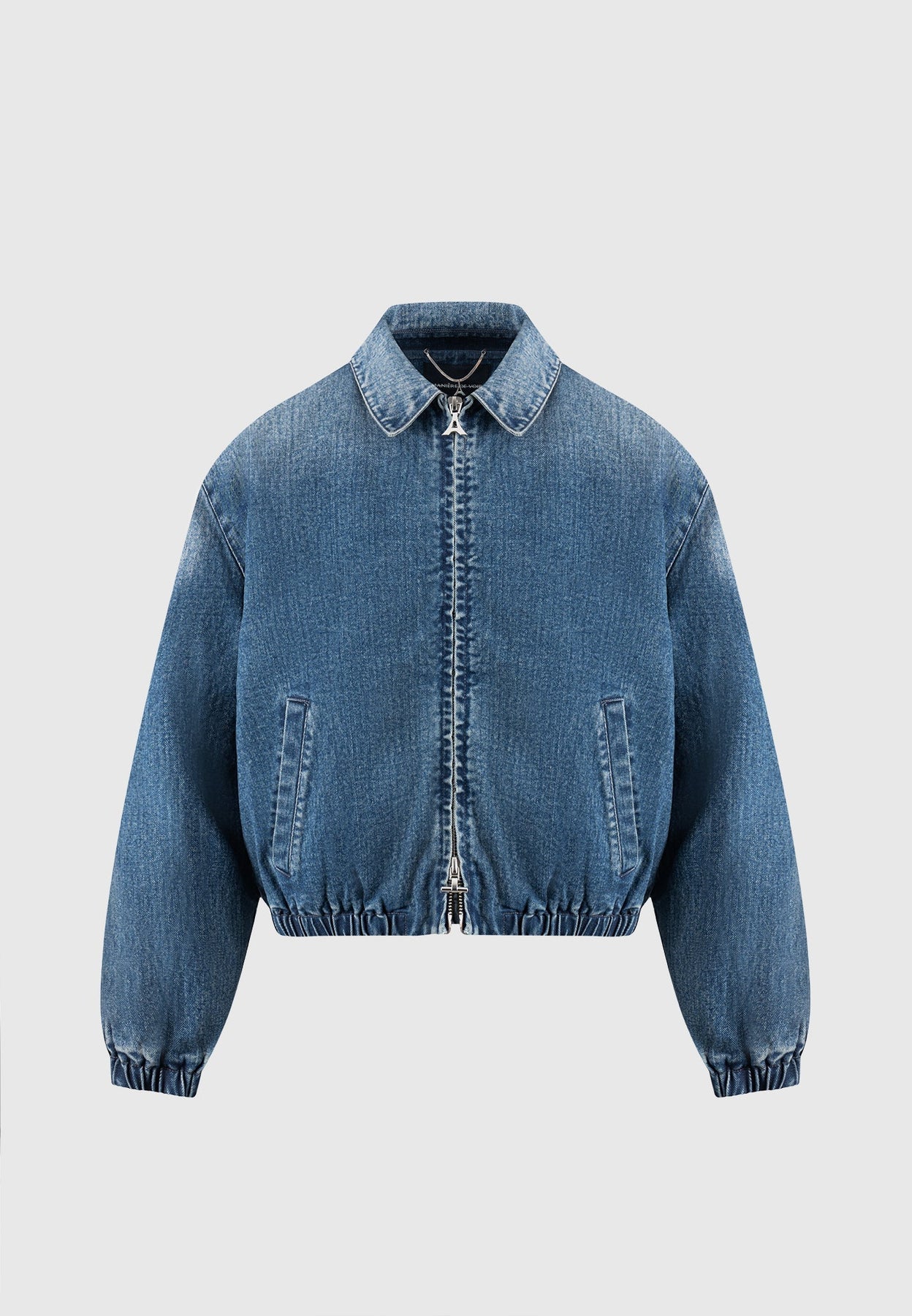 Introducing our new Denim Padded Cropped Bomber Jacket - the perfect addition to your wardrobe. With a relaxed fit and washed denim fabric, this jacket seamlessly transitions from day to night. Stay stylish and smart with this versatile piece.