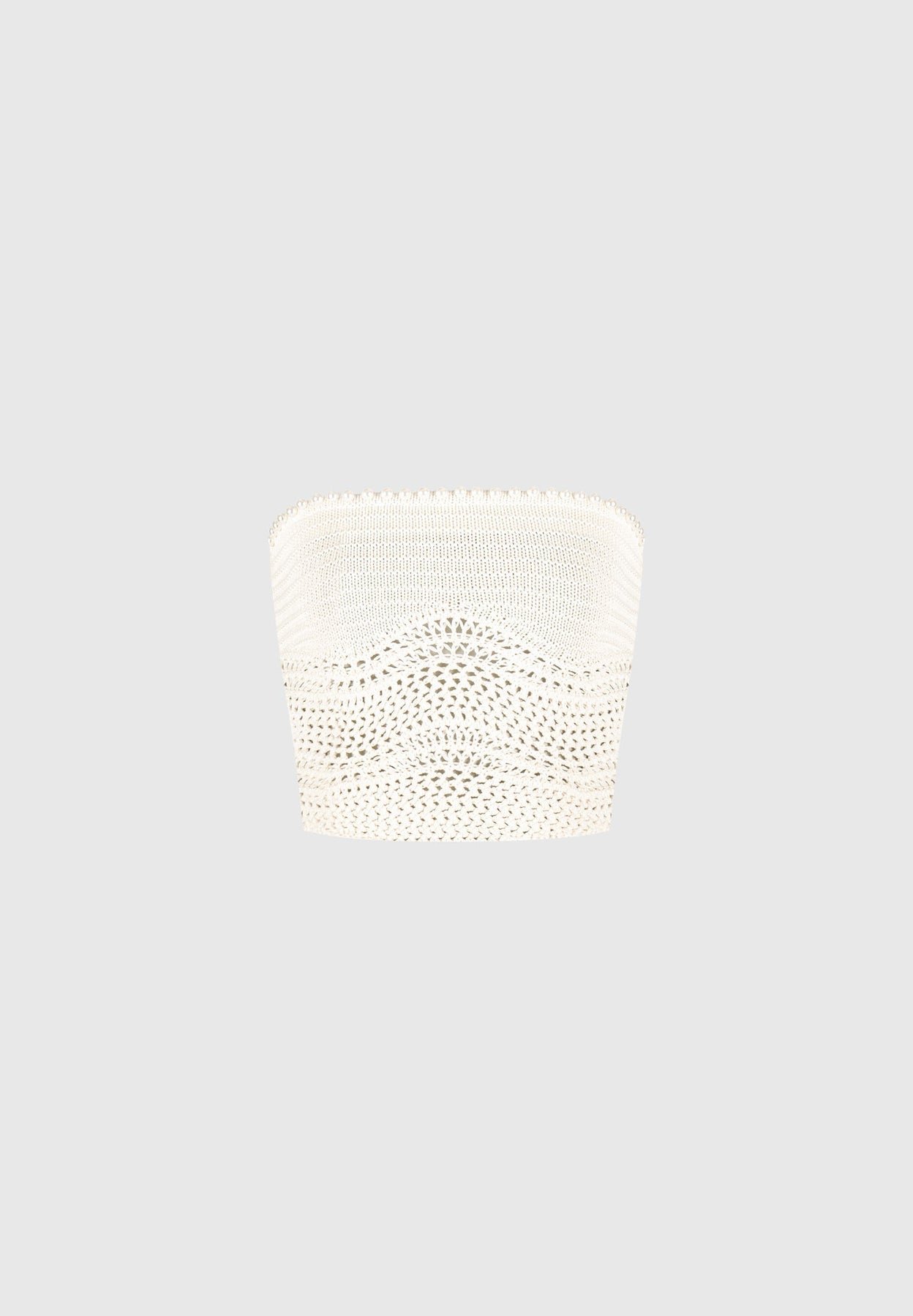 Expertly crafted with a soft knit and elasticated top edge, this Cream Crochet Bandeau Top is adorned with delicate pearl embellishments. Designed for comfort and style, this top is the perfect addition to any summer wardrobe.