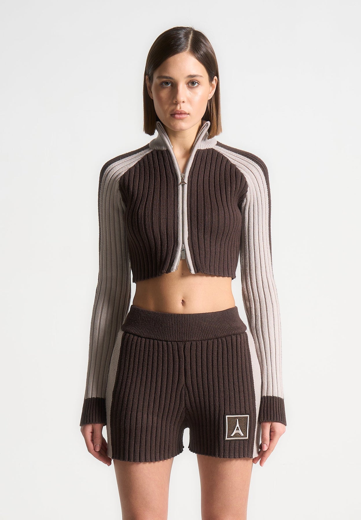 This Ribbed Knit Track Jumper features a soft touch and quality yarn for a comfortable and durable fit. The ribbed knit design adds a stylish touch, while the elasticated cuffs provide a secure fit. This fitted jumper is perfect for any occasion.