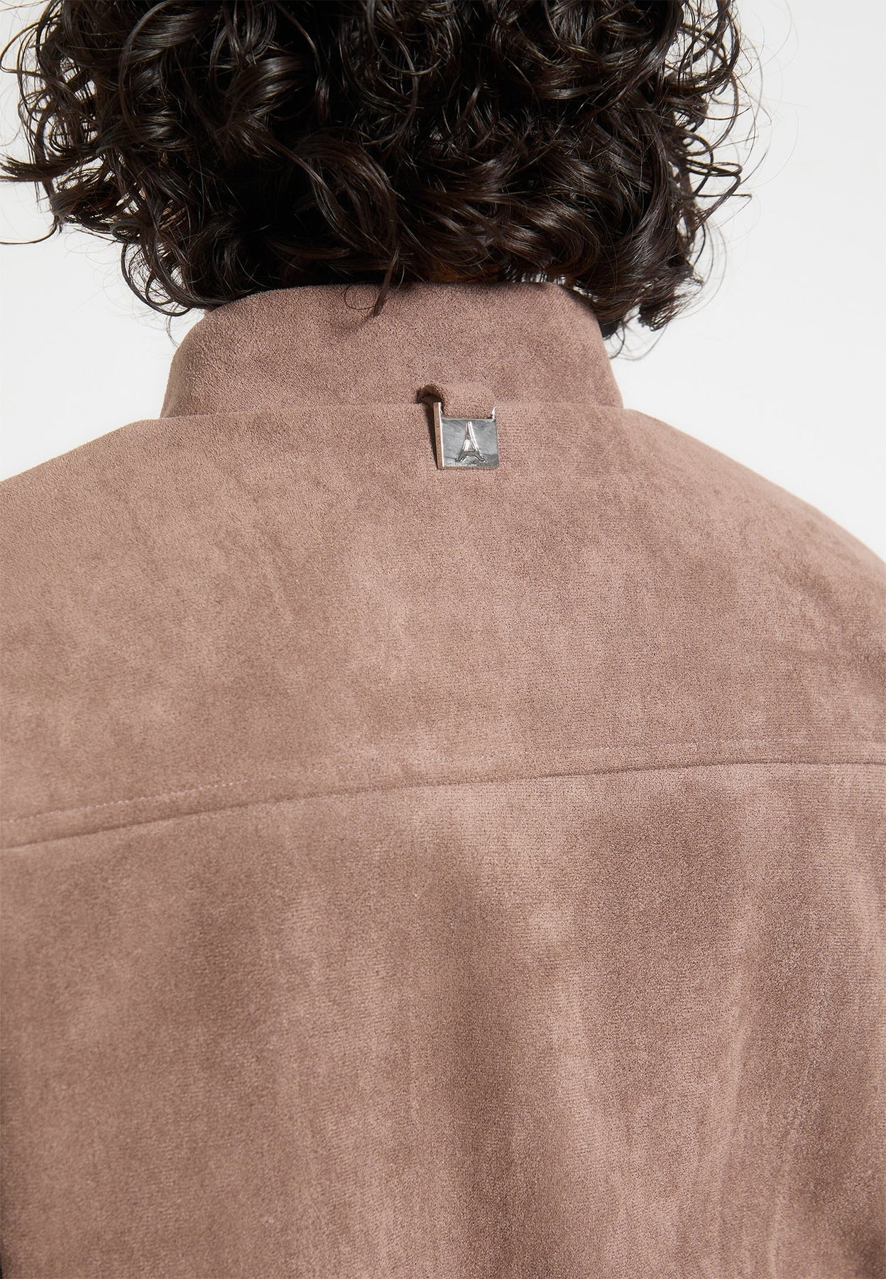 Suede Wide Shoulder Bomber Jacket - Taupe