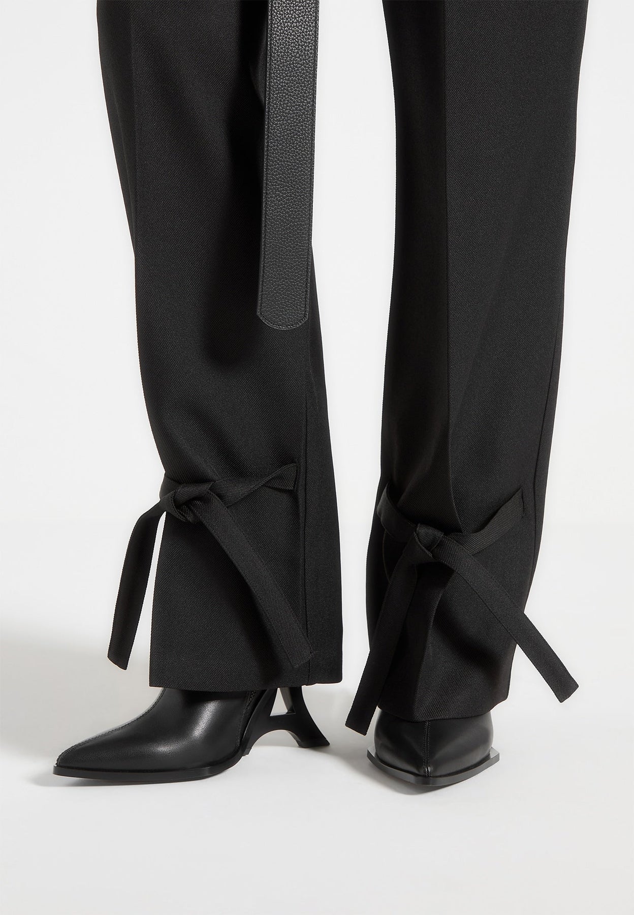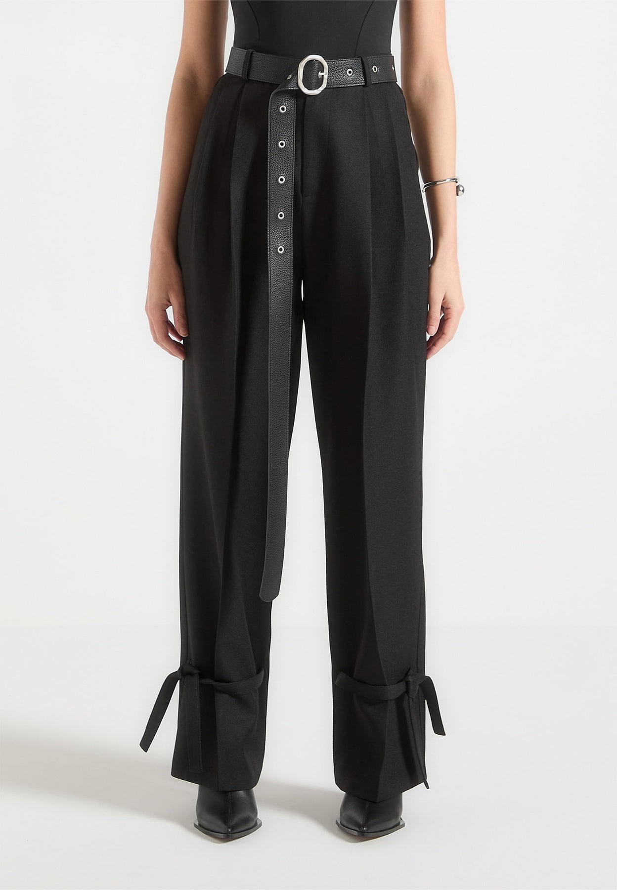 Tailored Trousers with Oversized Belt and Ankle Ties - Black
