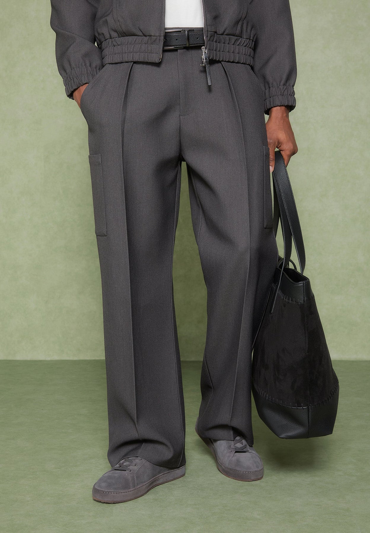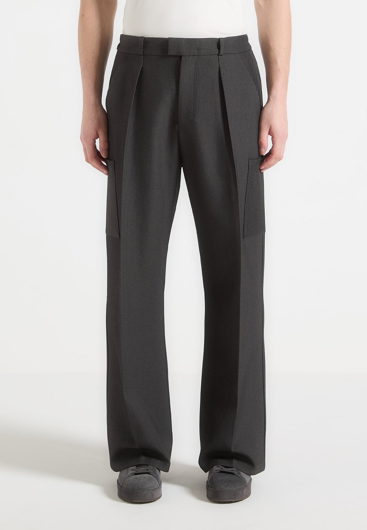 Wide Leg Pleated Pocket Trousers - Grey