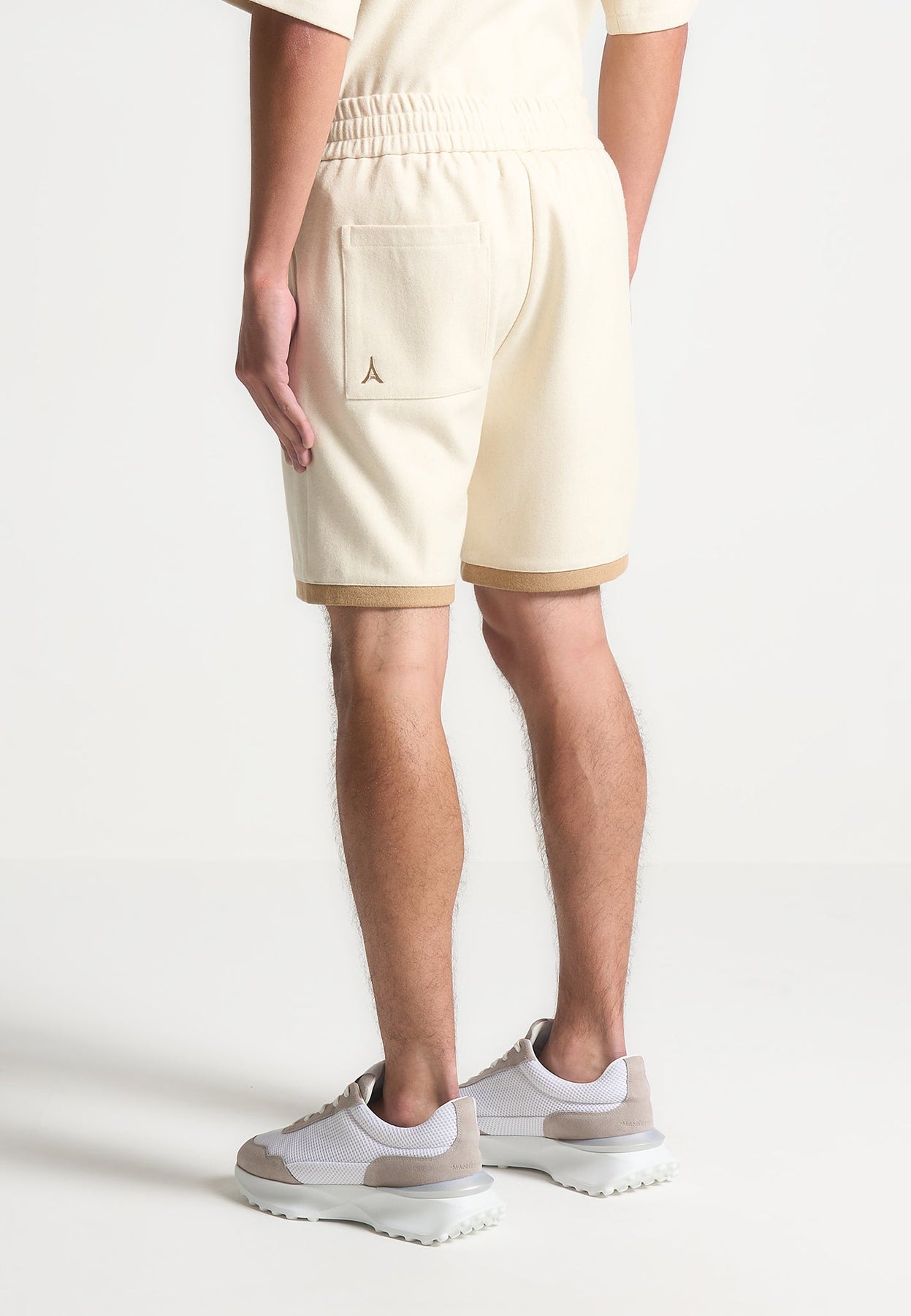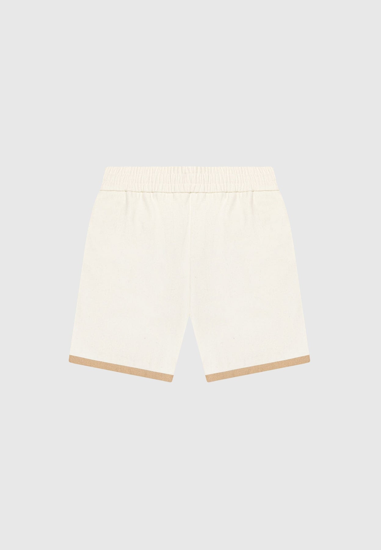 These Wool Shorts are crafted from high quality fabrics, ensuring durability and comfort. The contrast hem adds a touch of style, while the elasticated waistband provides a perfect fit. Pair them with our Boxy Wool Revere Shirt for a complete and polished look.